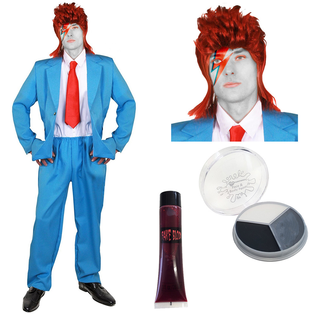 I am wearing the costume. My costume is loosely based on david bowie's early personas, ziggy stardust and halloween jack (rebel rebel/diamond dogs era). Follow this easy tutorial to get the look using affordable drugstore makeup. The world lost one of its most influential and creative musicians, actors, fashion icons this january. The most common ziggy stardust costume material is plastic. I bought a shiny red orange david bowie looking wig and the authentic vintage 70's button up shirt from ebay i bought the polka dot scarf for only $2 at goodwill. Coolest homemade ziggy stardust costume. 5 out of 5 stars. The '70s might draw up a lot of feelings of nostalgia for you, just like it does for ree drummond. I'm not too picky when it comes to music other than not much country & absolutely no… To honor him, we created this diy costume based on his outfit in the life on mars? Halloween costumes for work halloween makeup halloween 2019 halloween ideas rockstar costume women david bowie makeup david bowie costume bowie birthday rock costume. I am wearing the costume.
